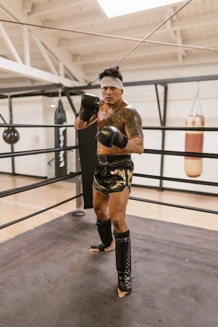 When practicing kickboxing combinations learned from PDFs, prioritizing safety through appropriate gear is paramount․ Essential equipment includes hand wraps for wrist support, boxing gloves to protect your hands and your partner’s, shin guards to shield your shins during kicks, and a mouthguard to prevent dental injuries․
